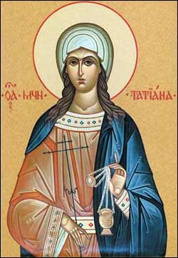 Света мъченица Татяна произлизала от знатно и богато римско семейство, което я възпитало от ранно детство в християнската вяра, макар нейният баща да бил три пъти прeфект на гр. Рим. Изцяло проникната от тази вяра, Татяна била посветена за дякониса и всецяло се отдала на милосърдие и непрестанна молитва. Тя се отказала от светски радости и се обрекла на целомъдрие и по този начин още повече засияла като достойна за мъченически венец.